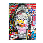 Ce tableau rend hommage à cette icône de l’horlogerie, en mettant en avant son design unique : cadran noir ou blanc avec sous-compteurs contrastés, bracelet Oyster en acier ou or, et boîtier robuste Oystersteel. Une pièce de décoration idéale pour allier passion mécanique et élégance artistique.